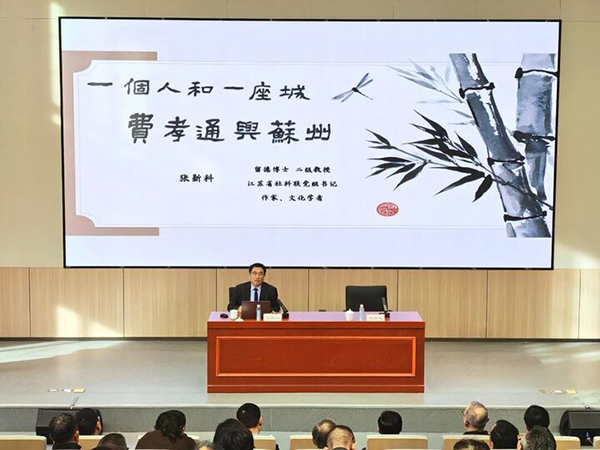 在开班式后,张新科以《一个人和一座城——费孝通与苏州》为题授课,分“在苏州:成长与启蒙”“别苏州:求学与转型”“归苏州:江村研究”“出苏州:国际视野”“荣苏州:学术巅峰”“念苏州:乡土情结”六个篇章,详细讲述了费孝通先生的个人成长、求学以及26次深入江村开展田野调查的经历,并在此基础上分享了费孝通先生从江村经济到小城镇研究,从“苏南模式”到“全国一盘棋”,研究视域逐步放大的“从实求知”的学术精神。既重现了《江村经济》这部“人类学里程碑”的诞生始末,也带领学员深入品读了费孝通先生“人多地少,农工相辅”的智慧与“文化自觉”的担当。